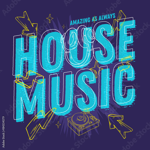 "House Music 90s Influenced Typographic Design With Hand Drawn Line Art Cartoon Style Elements ...