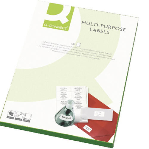 Q-Connect Multipurpose Labels 99.1x67.7mm 8 Per Sheet White (Pack of ... Ideal for a variety of labelling applications, these Q-Connect multipurpose labels are suitable for use with inkjet and laser printers, as well as copiers and multifunctional machines. Providing secure adhesion, each white, 70gsm label measures 99.1 x 67.7mm This pack contains 100 A4 sheets, with 8 labels per sheet (800 labels in total).