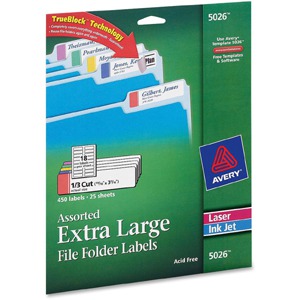 File Folder Labels with Sure Feed™, 2/3” x 3-7/16”, 750 Printable Labels, Removable Adhesive, Assorted Colors (6466)